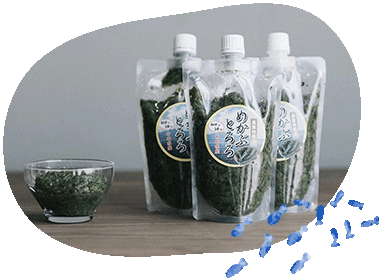 日本一の干満差が作り出す強い潮流と、雲仙普賢岳の恩恵を受けたミネラル豊富な有明海で育てた「めかぶ」を無添加自然食品として「きざみとろろ」に加工しました。