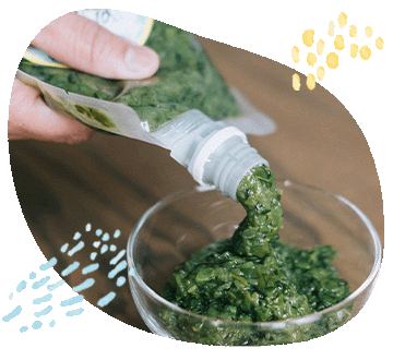 春の採れたてわかめの「めかぶ」を、下ゆでしてこだわりの粒加減に調節した特性ミキサーにかけて、そのままチューブパックに入れて冷凍しています。